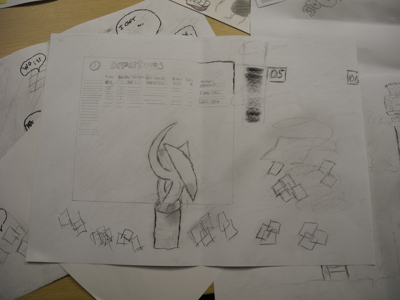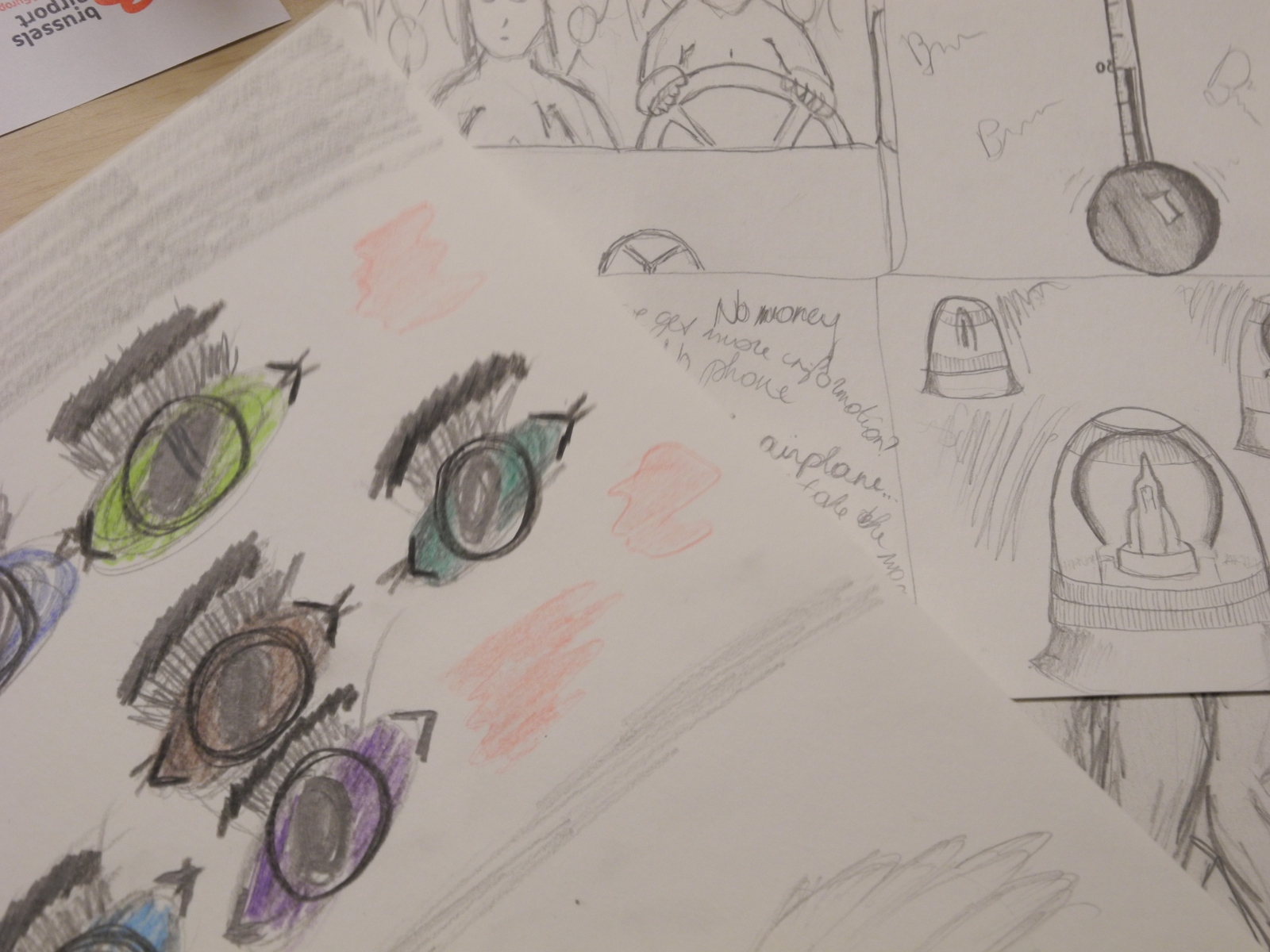 Via this workshop the employees of the airport are stimulated to express their feelings about about this trauma. The aim is to forget about the stress of the job and home. In this way certain feelings can find a place. The whole form comes into existence and grows via individual thoughts and conversations. The ideas find their way via simple drawings, collages, texts, … that are assembled as a whole. The personal drawings, texts,… show an individual picture but together they form one installation. The end result is placed in the offices of the airport.