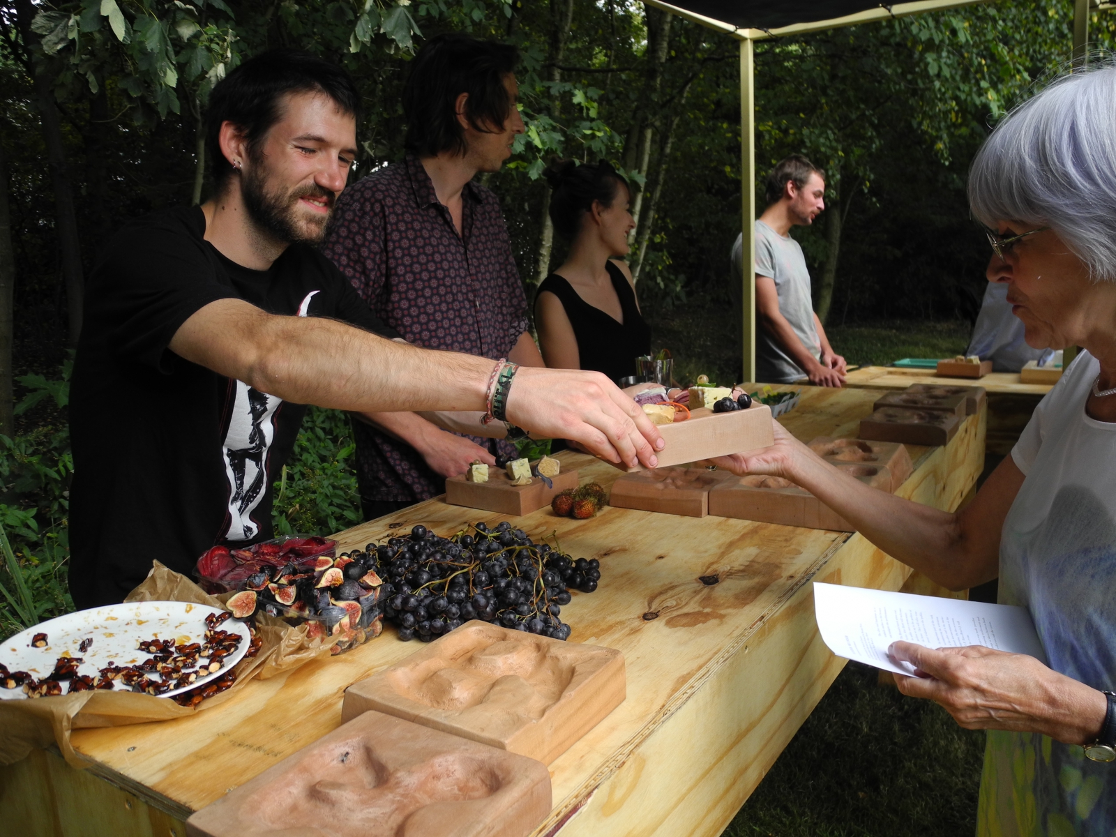 Het Brusselse kunstenaars collectief After Howl verwelkomde het publiek in een tijdelijk paviljoen dat tijdens de performance ook gebruikt werd om tijdelijke sculpturen aan te bieden aan de toeschouwer.