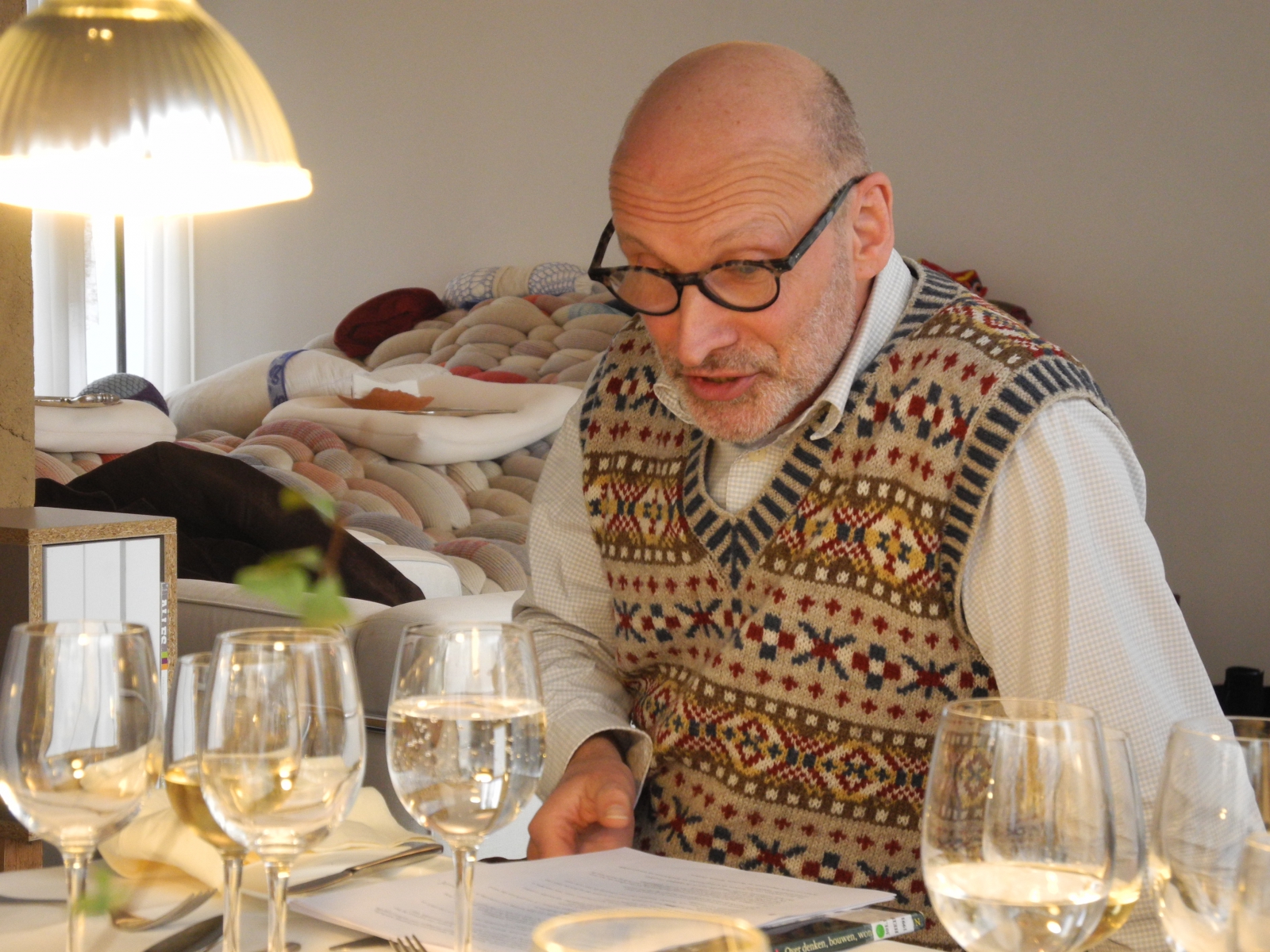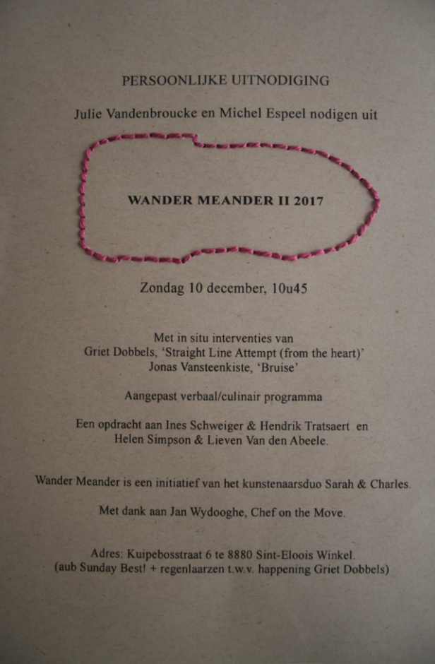 Hendrik Tratsaert leest voor uit ‘Wandelen – Buiten’ een filosofische gids van Frédéric Gros en maakte een Wander Meander - knittelvers waarbij de ‘houseslippers’ van Ines Schweiger en Helen Simpson hun betekenis krijgen.